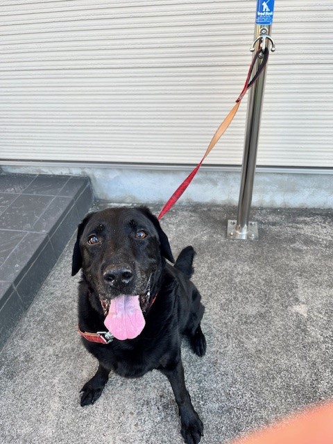 我が家では、散歩から帰って来ると、このポールにつないで、ブラッシングや足ふきをしています